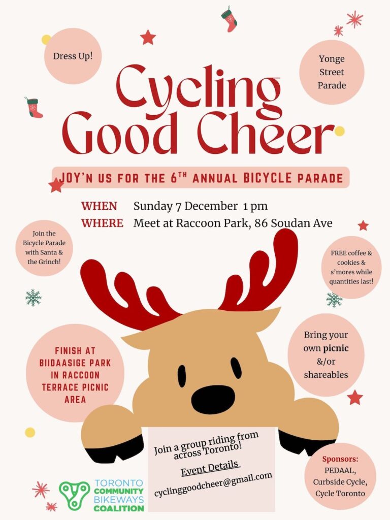 December 3, 2025 - For the sixth consecutive year, Toronto Community Bikeways Coalition will bring together people from across the Greater Toronto Area through its Cycling Good Cheer Ride designed to promote fun, safe, and active transportation.