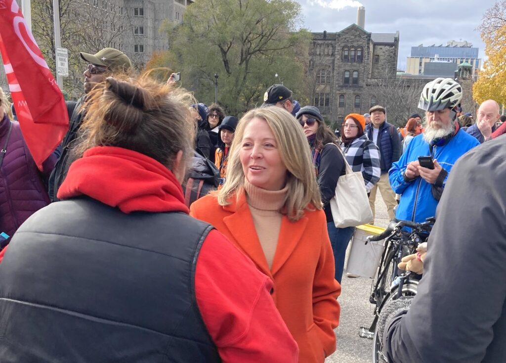 Also on hand for the event were Marit Stiles, leader of Ontario’s NDP, the Official Opposition, and Mike Shriener, leader of Ontario’s Green Party. Stiles was recently ejected from the Ontario Legislative Assembly for calling the Ford Government corrupt and refusing to withdraw her remarks.