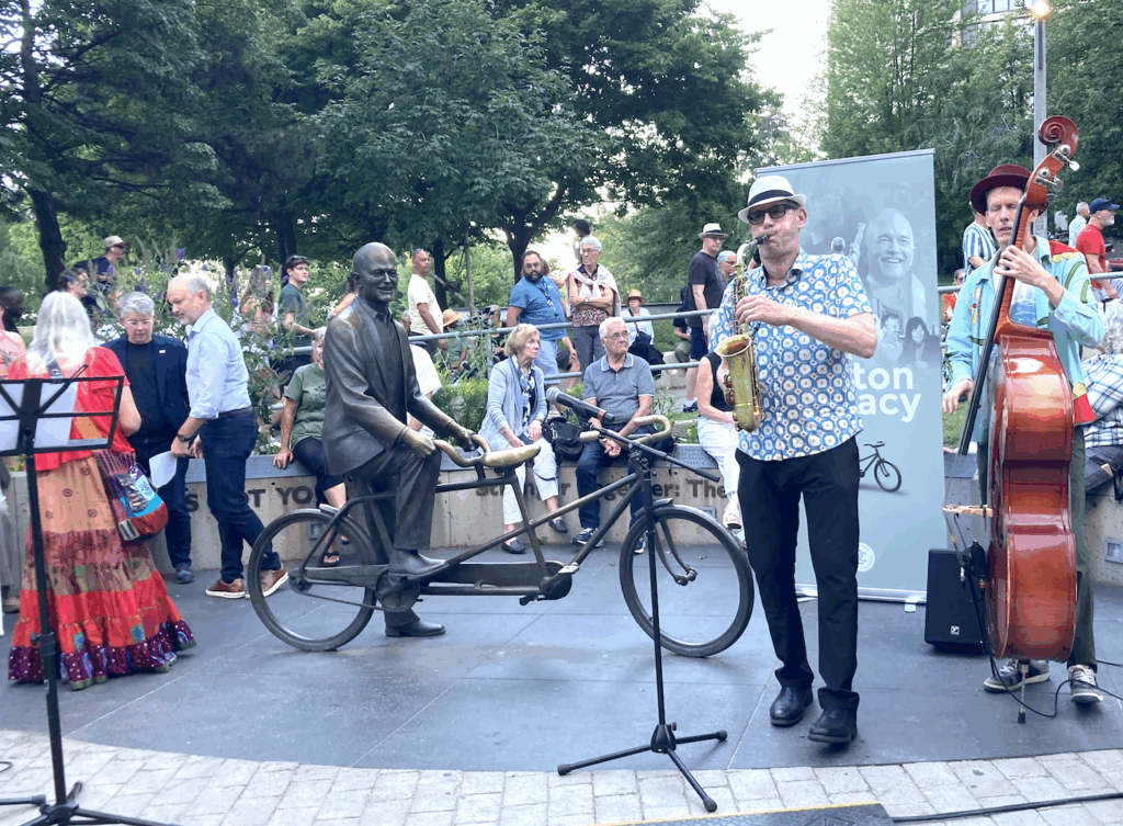 Layton was also an active cyclist and promoted cycling with his wife, Toronto Mayor Olivia Chow, who recalled their many adventures on their tandem, which ultimately led to the stunning bronze bike sculpture by Toronto artist David Pellettier.