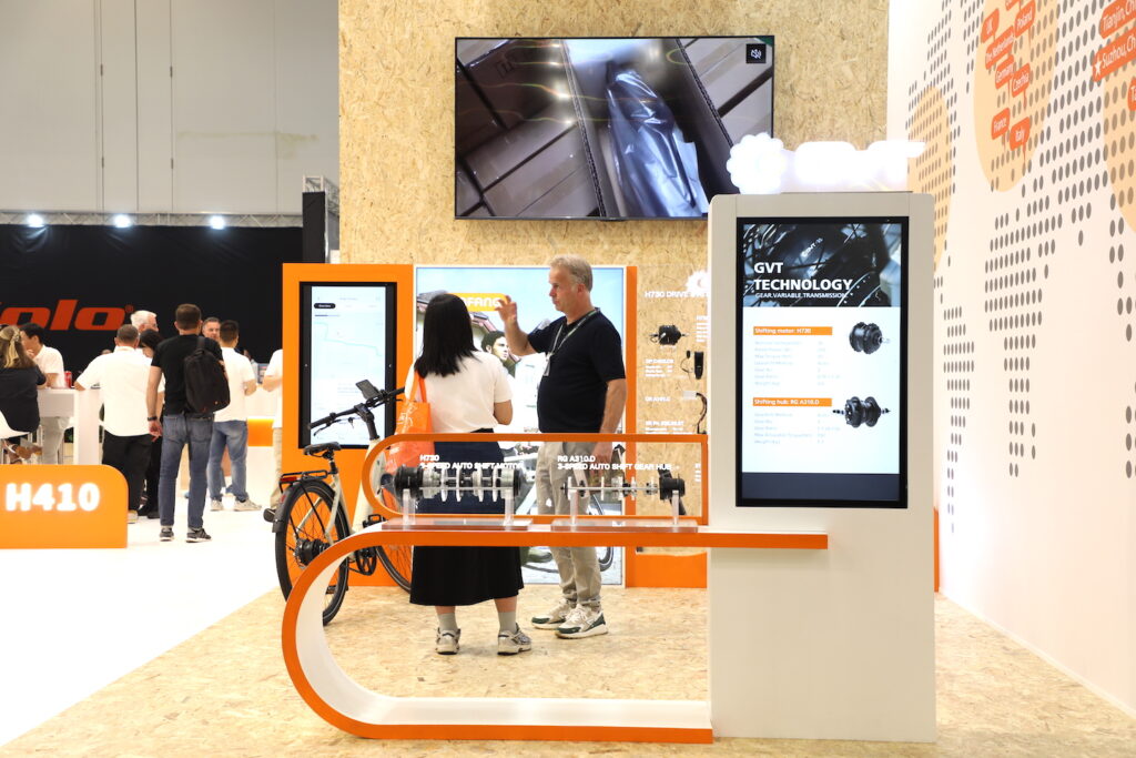 Bafang Electric’s booth at Eurobike highlighted their new H730 3-speed automatic gearbox system. ©
