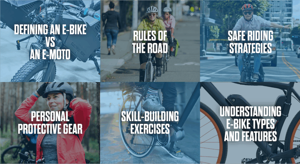 The eBike eCourse covers key safety and riding concepts all in a self-paced curriculum that can be completed in less than two hours. New and experienced riders can all benefit from the material in the course.