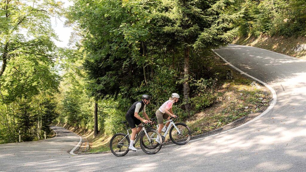 The Fastlane boasts smooth lines and a svelte silhouette, and the joy it brings to conquer climbs like a pro is unparalleled. It shares geometry with its acoustic sibling, the new Addict road bike. The lightweight, aero design is intended to save on watts – battery watts – and to help maintain a cruising speed with assist up to 32kph in Canada, or 28mph in the US (Class 3). No awkward mode shifting positions, no noisy drive units. Just pure enjoyment and a natural riding feeling. With the Fastlane, you can stay present and embrace the ride.