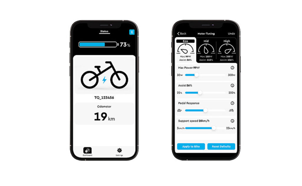 Believing that the principle of ‘less is more’ doesn’t just ring true when it comes to size, weight and noise, but also when it comes to user friendliness, the system intentionally features only three ride modes which are, however, fully customizable through the TQ App. Additionally, the Q-factor of the drive unit is identical to analog bikes which allows for the same natural and efficient feel at the pedals – something that’s often overlooked when it comes to E-Bikes.