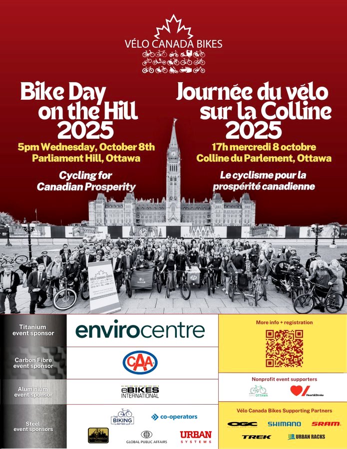 October 2, 2025 - (Ottawa, ON) Bike Day on the Hill is back! Join parliamentarians, local and national leaders, and fellow cyclists in for a non-partisan celebration of everyday cycling in Canada for Bike Day on the Hill 2025 in Ottawa on Wednesday, October 8th at 5 p.m.!
