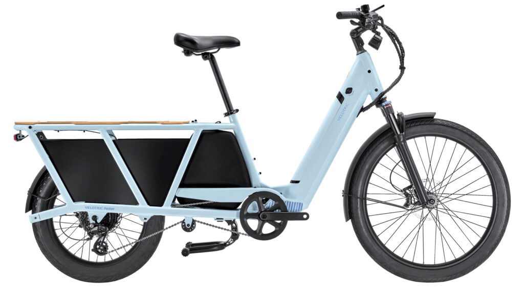 The Velotric Packer 1 is an e-cargo bike that is UL 2271 and UL 2849 certified and has a carrying capacity of 440lbs for all kinds of cargo. The 750W rear hub motor with 75Nm of torque provides five levels of pedal assist along with a removable throttle and is paired with a removable 691Wh battery for a range of 83km. The system integrates seamlessly with Shimano 8-speed shifting. A plush, ergonomic saddle is paired with hydraulic front suspension with 80mm of travel, and wide CST tires ensure vibrations from terrain are smooth. The Packer 1 comes stocked with a rear rack, fenders, lights and a kickstand, but it can be further customized with a wide range of accessories to meet your needs.